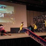 迎えた第二ラウンド。この戦いもヒュブリスがわずかながらリードを保ちながら試合が進行していきますが、徐々にわちゃごなが戦局に対応し始め、ヒット率を上げていきます。そしてラスト1秒、YUKARI選手とSHOTA選手が放った球が残り「1」になっていた前P選手、りゅう選手のライフを立て続けに削り、一挙に2ポイントをゲット。土壇場も土壇場、ジャスト0秒でドローに持ち込みます。